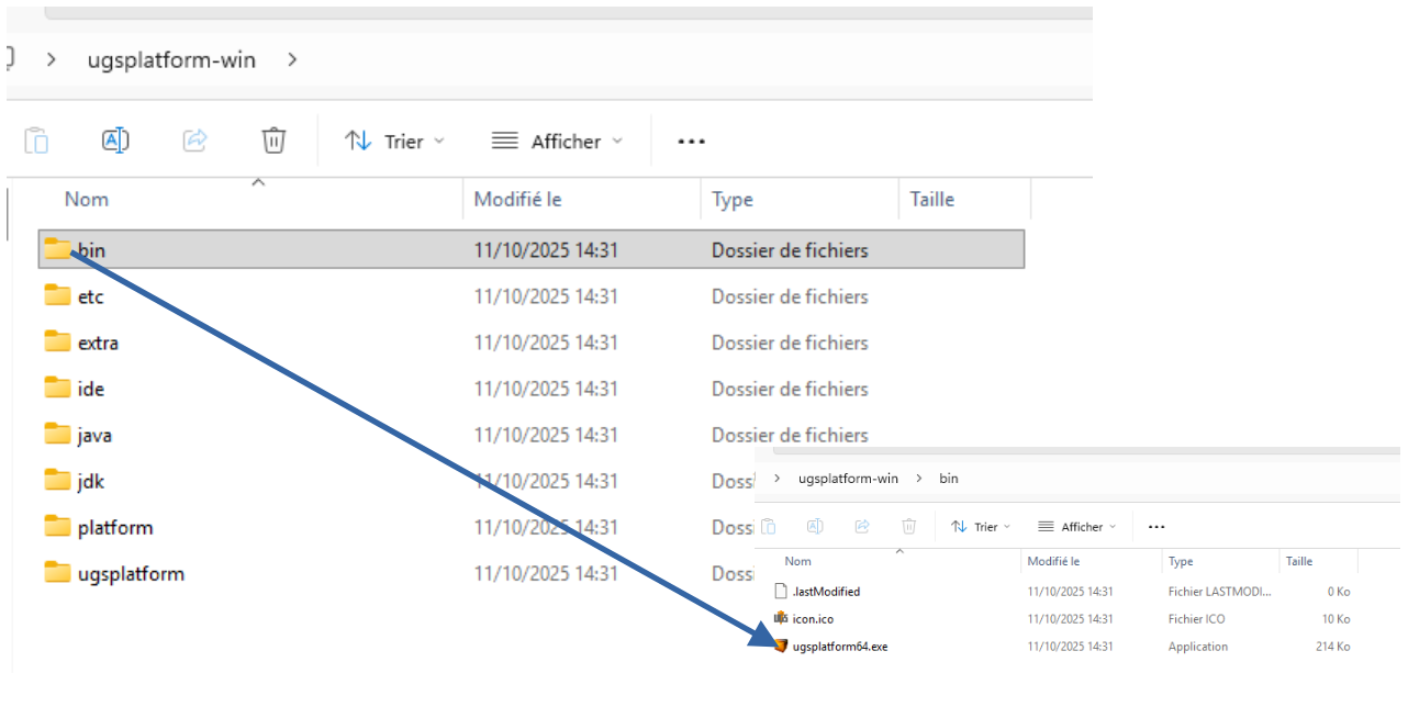 Double clique sur ugs-platform-app-win > ugsplatform-win > bin > ugsplatform64.exe